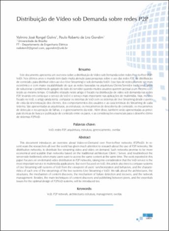 Item Avaliação de soluções para gerência de mobilidade IP baseadas na plataforma Android(Universidad Inca Garcilaso de la Vega, 2013-10) De Castro Monteiro, Claudio; Lima da Silva, Fábio; Da Luz Oliveira, Raysa; Coelho de Sousa, José Augusto; Dos Reis Rodrigues, Jezuila; Rocha Moreira, Pablo; Da Costa Neta, Angélica Julia; Caldeira, Carolinne; Andrade Rocha, Arich; Milhomem Meira, Lucas Henrique; Rocha, Alex; Lima, Honorio Henrique; Júnior, Jenilson; Barros, Lucas Augusto; De Lira Gondim, Paulo RobertoEste trabalho apresenta um estudo prático sobre o comportamento dos protocolos FMIP (Fast Mobile IP) e do SMIP (Specialized Mobile IP) para auxiliar a gerência de mobilidade em ambientes de redes sem fio. A escolha dos protocolos levou em consideração suas características semelhantes e a sua aplicabilidade em ambientes de integração de redes sem fio sem acoplamento. Para o trabalho, foram implementadas versões dos dois protocolos, visando seu funcionamento em dispositivos Android, considerando o crescente uso dessa plataforma de software em smartphones e tablets. Desta forma, os dois protocolos foram comparados em ambiente envolvendo duas WLANs parcialmente sobrepostas. Foram feitos testes com usuários sem mobilidade e com mobilidade, utilizando redes em produção, visando medir a latência real da migração do móvel de uma rede para a outra, sem considerar o tipo de serviço exigido pelo usuário do dispositivo. Em todos os testes, o SMIP teve melhor desempenho do que o FMIP. Adicionalmente, testes foram realizados considerando transmissão de sequências de vídeo sob demanda de um servidor para o móvel durante sua movimentação nos cenários considerados. Neste caso, a intenção foi avaliar e comparar a eficiência operacional dos dois protocolos, no sentido de garantir a qualidade de experiência (avaliada através da qualidade do vídeo) do usuário. Usando a métrica PSNR (Peak Signal-to-Noise Ratio), é mostrado então que o SMIP também superou o FMIP neste cenário, envolvendo mobilidade entre redes sem fio e transmissão de vídeo sob demanda.Item Distribuição de vídeo sob demanda sobre redes P2P(Universidad Inca Garcilaso de la Vega, 2011-10) Rangel Galvis, Valmiro José; De Lira Gondim, Paulo RobertoEste documento apresenta um overview sobre a distribuição de Vídeo sob Demanda sobre redes Peer-to-Peer (P2PVoD). Nos últimos anos o mundo tem dado muita atenção para pesquisas sobre o uso das redes P2P, de distribuição de conteúdo, para distribuir vídeo ao vivo (Live Streaming) e sob demanda (VoD). Esse tipo de redes promete ser mais econômico e com maior escalabilidade do que as redes baseadas na arquitetura Cliente/Servidor tradicional, além de solucionar o problema do gargalo do lado do servidor quando muitos usuários querem acessar a um mesmo conteúdo ao mesmo tempo. O trabalho relatado neste artigo é focado na distribuição de vídeo sob demanda nas redes P2P, levando em conta que o serviço de VoD é o serviço mais importante nas aplicações de multimídia. Mas, mesmo focado no VoD, o artigo ainda tenta comparar os sistemas de VoD com os sistemas de Live Streaming desde o ponto de vista da sincronização dos clientes, dos comportamentos dos usuários e as características do Streaming de cada sistema. São apresentadas as arquiteturas, as estruturas, os mecanismos de descoberta de conteúdo, os mecanismos de detecção e recuperação de falhas, e o gerenciamento da rede. Além disso, também serão apresentadas as principais técnicas de busca e publicação de conteúdo entre os pares, e as considerações essenciais para o desenho ótimo de sistemas P2PVoD.Item Segurança para televisão digital: uso de WS-Security para o consumo de web services seguros(Universidad Inca Garcilaso de la Vega, 2012-10) De Sousa, Lilissanne Marcelly; De Lira Gondim, Paulo Roberto; Campos da Silva Filho, ManoelEste artigo propõe o emprego de segurança fim-a-fim na comunicação e no consumo de serviços disponibilizados por Web services seguros existentes, através de aplicativos para TV digital interativa. É considerado o emprego de protocolos de comunicação padronizados como HTTP e SOAP, considerando versões específicas, compatíveis com o middleware adotado no Sistema Brasileiro de Televisão Digital. Para garantir a segurança na comunicação e no consumo de serviços seguros, é proposto o uso de padrões que garantam a segurança fim-a-fim, como WS-Security, XML Encryption e XML Signature.Item Streaming de vídeo escalável em rede celular de 3ª geração(Universidad Inca Garcilaso de la Vega, 2011-10) Canuto Cunha, Vanice; De Lira Gondim, Paulo Roberto; Mulinari, RodrigoEste artigo apresenta um estudo da avaliação objetiva da qualidade do vídeo codificado no padrão H.264/SVC (Scalable Video Coding), transmitido por meio de redes de comunicação móvel de 3ª Geração (3G). O padrão H.264 permite o ajuste do bit rate de acordo com as condições da rede e pode ser utilizado em diferentes cenários, onde múltiplos fluxos de bits são enviados a partir de uma mesma fonte, com diferenciação na taxa de quadros e de bits por segundo. Com a ajuda de um esquema auto-adaptativo que considera feedbacks dos receptores, o conteúdo codificado na origem é então transmitido de acordo com as condições de rede e capacidade do terminal, permitindo avaliar o desempenho do esquema adaptativo para streaming de vídeo escalável por meio de redes 3G.