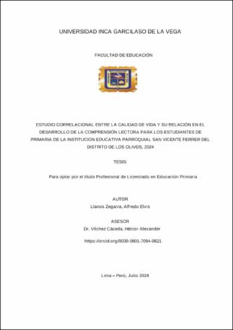 Item Estudio correlacional entre la calidad de vida y su relación en el desarrollo de la comprensión lectora para los estudiantes de primaria de la institución educativa parroquial San Vicente Ferrer del distrito de los Olivos, 2024(Universidad Inca Garcilaso de la Vega, 2025-04-15) Llanos Zegarra, Alfredo Elvis; Vílchez Cáceda, Héctor AlexanderEl objetivo de este trabajo fue evaluar la calidad de vida y su relación con el desarrollo de la comprensión lectora en los estudiantes de primaria de Institución Educativa Parroquial San Vicente Ferrer del Distrito de Los Olivos en 2024. El enfoque: cuantitativo. Tipo descriptivo, el diseño: no experimental y descriptivo aplicado, muestra a 150 estudiantes del tercer grado de la institución educativa mencionada. Como instrumento de investigación un cuestionario aplicado a los estudiantes usando las siguientes variables: Calidad de vida y desarrollo de la comprensión lectora. Los datos utilizados en el proceso de investigación, ya que fueron diseñados a partir de la definición de dimensiones e indicadores. El cuestionario se aplicó durante 7 días, y se pudo lograr a través de la carta de consentimiento de los padres que recibieron por parte de los niños, el cual se obtuvo en una reunión organizada por el tutor del salón y el docente de Plan Lector bajo la dirección del autor de la investigación. Los resultados estadísticos del Rho de Spearman el Coeficiente de correlación es un valor alto y positivo de ,803 y la Significancia Bilateral de ,000 (El parámetro para que exista significancia es entre ,000 a ,005) para este caso se rechaza la hipótesis nula y se acepta la hipótesis alterna que dice: La calidad de vida SI se relaciona con el desarrollo de la comprensión lectora para los estudiantes de primaria de la institución Educativa Parroquial San Vicente Ferrer del distrito de Los Olivos, 2024.Item Influencia de los materiales didácticos en el aprendizaje significativo de los alumnos de segundo grado del nivel de primaria en la institución educativa privada en San Miguel, Lima 2024(Universidad Inca Garcilaso de la Vega, 2025-03-13) Paraguay Huacause, Alexandra María; Mogollón Cruz, Yvy ElizabethEl objetivo principal de la investigación fue Determinar la influencia del uso de materiales didácticos en el aprendizaje significativo de los estudiantes de segundo grado de primaria de la I.E.P. Buenas Nuevas, UGEL 03, San Miguel, Lima 2024. Esta investigación es de tipo explicativo, ya que describe las causas de esta problemática y el por qué se relacionan estas dos variables. Se utilizó la técnica de la observación en el trabajo diario con los 18 estudiantes para llegar a los resultados favorables que el empleo e incorporación de elementos concretos en el desarrollo del aprendizaje lo hace más motivador. En conclusión, se ha determinado la influencia significativa del uso de materiales didácticos en la construcción del aprendizaje porque mediante la manipulación y exploración de instrumentos tangibles se estimula los sentidos lo cual favorece de manera sustancial la incorporación de conocimientos en la estructura cognitiva de los alumnos.Item La influencia de la motivación en el desarrollo de hábitos de lectura en estudiantes de segundo de primaria de la I.E. Andrés Reátegui Reátegui, distrito de San José de Sisa, provincia El Dorado 2023(Universidad Inca Garcilaso de la Vega, 2025-03-13) Vásquez Reyna, Carlota; Vivanco Arones , Nancy IsabelEl objetivo de esta investigación consistió en, determinar la influencia de la motivación en el desarrollo de hábitos de lectura en estudiantes de segundo de primaria de la Institución Educativa “Andrés Reategui Reátegui”, distrito de San José de Sisa, provincia El Dorado, región San Martín, 2023. Tuvo un enfoque cuantitativo; de tipo básica; diseño no experimental, de corte transversal; y alcance descriptivo explicativo. La muestra y población estuvieron constituidas por 323 y 28 estudiantes respectivamente. En la recolección de datos se empleó la técnica de observación y como instrumento la ficha de observación, la misma que fue validada mediante juicio de expertos. Los resultados referentes a la variable motivación, en promedio fueron: el 48,03% se encuentran en inicio; el 39,47% en proceso; el 12,50% alcanzaron el logro previsto; y ninguno alcanzó un logro destacado. De manera similar, en cuanto a la variable hábitos de lectura, el nivel de logro fue el siguiente: el 55,00% se encuentran en inicio; el 34,00% en proceso; el 11,00% alcanzaron el logro previsto; y ninguno alcanzó un logro destacado. Concluyendo que, la influencia determinada entre la motivación y los hábitos de lectura, es directa. Sin embargo, en este estudio se evidenció bajo desarrollo de la motivación por los agentes educativos y como consecuencia, hay escasos hábitos de lectura.Item Estrategias didácticas y el desarrollo de la conciencia ecológica de los estudiantes de 6 a 12 años de la I.E N°00020, provincia de Rioja - San Martin, año 2021(Universidad Inca Garcilaso de la Vega, 2023-06-13) Ricse García, Moisés Pablo; Jaimes Palacios, Elvia MarujaEl objetivo principal de la investigación fue establecer la relación entre la aplicación de estrategias didácticas y la conciencia ecológica de los estudiantes de 6 a 12 años de la I.E N°00020, Provincia de Rioja – San Martin, año 2021. La metodología utilizada fue de tipo aplicada, de enfoque cuantitativo, de nivel descriptivocorrelacional y diseño no experimental de corte transversal. La población objeto de estudio fue de 58 estudiantes, de los cuales 51 conformaron la muestra probabilística, a quienes se les aplico una encuesta tipo cuestionario, cuya confiabilidad expuesta por el coeficiente de Alfa de Cronbach (0.872 y 0.815) indican una elevada confiabilidad. En los resultados se evidencio que el 61% de estudiantes perciben que los docentes aplican adecuadamente las estrategias didácticas