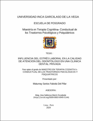Item Relación entre la empatía y la ansiedad en estudiantes de psicología de una universidad privada de Lima, 2024.(Universidad Inca Garcilaso de la Vega, 2025-03-24) Bogardus Cook, Jean Carlo; Crispín Rodríguez, Santiago ArnolEl objetivo de la presente investigación es analizar la relación entre empatía y ansiedad, utilizándose un diseño correlacional, no experimental. La muestra estuvo integrada por 271 estudiantes de Psicología de una universidad privada de Lima. Los instrumentos de recolección de datos empleados son la Escala IRI de Empatía (Interpersonal Reactivity Index) y el Inventario de ansiedad IDARE. Ambos instrumentos han sido validados en nuestro país. Los resultados evidenciaron de forma general que existe correlación positiva estadísticamente significativa entre empatía y ansiedad, lo que significa que mientras mayor es el nivel de empatía, se presentan mayores niveles de ansiedad en estudiantes de psicología de una universidad privada de Lima. De igual manera, se encuentra relación estadísticamente significativa entre la ansiedad rasgo y las dimensiones fantasía, preocupación empática y malestar personal, que pertenecen a la empatía. Por otro lado, no se halla relación significativa entre toma de perspectiva y ansiedad rasgo.Item INFLUENCIA DEL ESTRÉS LABORAL EN LA CALIDAD DE ATENCIÓN DEL ODONTÓLOGO EN UNA CLINICA DENTAL PRIVADA(Universidad Inca Garcilaso de la Vega, 2025-02-24) Matumay Santos , Fabiola Del Pilar; Marín Escalante, Ana SalinovaAntecedentes: El estrés es una respuesta natural del organismo frente a situaciones que se perciben como amenazantes o desafiantes, el estrés laboral en odontología es un factor significativo que puede influir de manera directa en la calidad de atención proporcionada a los pacientes. Los odontólogos enfrentan múltiples fuentes de estrés, como una carga de trabajo intensa, alta responsabilidad, y demandas emocionales y físicas. El objetivo fue determinar la influencia del estrés laboral en la Calidad de Atención del odontólogo (2024). Método, técnica e instrumento: El enfoque mixto, no experimental, transversal y correlacional. La muestra de estudio fue en 30 odontólogos y 80 pacientes atendidos en una Clínica dental privada de Lima, se utilizó 2 cuestionarios para medir las variables uno para los pacientes en la calidad de atención y otro de estrés laboral para los odontólogos. La técnica fue la encuesta. Resultados: Los datos recolectados se procesaron en una tabla de Excel 2013 y se trasladó la información al software SPSS vs. 24, para elaborar tablas, figuras y estadísticas inferenciales que permitieron contrastar la hipótesis. Se aplicó la prueba de Correlación de Spearman entre el estrés laboral del odontólogo y la calidad de atención muestra un nivel de correlación ,089 siendo positiva muy baja, con un nivel de significancia de 0,64 estadísticamente no significativo. Conclusión: Existe una correlación positiva muy baja, se concluye que el estrés laboral no influye en la calidad de atención en odontólogos de una Clínica privada de la ciudad de Lima.Item Estrés académico y personalidad en los estudiantes de quinto de secundaria de una institución educativa estatal de la provincia constitucional del Callao, periodo 2019(Universidad Inca Garcilaso de la Vega, 2025-02-19) Avila Vera, Luis Alberto; Sandoval Vilchez, JuanLa presente tesis titulada “Estrés Académico y Personalidad en los estudiantes de quinto de secundaria de una Institución Educativa Estatal de la Provincia Constitucional del Callao, periodo 2019”, la cual tuvo como objetivo principal: Analizar la relación entre el estrés académico y la personalidad en estudiantes del 5to año de secundaria. El estudio fue de tipo descriptivo-correlacional con diseño no experimental, y corte transversal, que tuvo una población de 100 estudiantes; el muestreo fue no probabilístico de tipo censal. Los instrumentos utilizados han sido: El Cuestionario de Estrés Académico (CEA), fue elaborado por Cabanach, Valle, Rodríguez, Piñeiro y García). Y el Cuestionario de Personalidad de Eysenck Revisado (EPQ-R) Adaptada en Lima de Domínguez. Como conclusiones se puede evidenciar. Los resultados mostraron que existe una relación significativa entre el estrés académico y la personalidad de los estudiantes, debido a que el problema del estrés académico en sus diferentes manifestaciones afecta directamente sobre la personalidad de los estudiantes. Existe relación significativa entre la dimensión estresores y la personalidad de los estudiantes de quinto de secundaria de una institución educativa estatal de la Provincia Constitucional del Callao. Existe relación significativa entre la dimensión respuesta al estrés y la personalidad de los estudiantes. Existe relación significativa entre afrontamiento al estrés y la personalidad de los estudiantesItem Factores socio demográficos y ambientales en la calidad del sueño de los pacientes hospitalizados en una Institución Pública en el año 2021(Universidad Inca Garcilaso de la Vega, 2024-06-19) Valdivia Mendiola, Mónica Ruth; Palomino Castro, CesarEsta investigación tuvo como objetivo determinar relación de los factores socio demográficos y ambientales con la calidad de sueño de los pacientes hospitalizados en una Institución Pública en el año 2021; se realizó el estudio bajo la metodología de enfoque cuantitativo. Diseño de investigación no experimental, trasversal. La población de estudio correspondió a todos los pacientes hospitalizados en los Pabellones de Medicina Interna (240), siendo la muestra seleccionada 148 pacientes. Se utilizó como técnica la encuesta y como instrumento el Cuestionario Test de Calidad de Sueño de Pittsburgh, estandarizada en el Perú en 2012 por Luna S., Ybeth., Robles A., Yolanda, y Agüero P., Ysela.Se obtuvieron como resultado, que tanto el factor social y demográfico presentaron un nivel de significanci