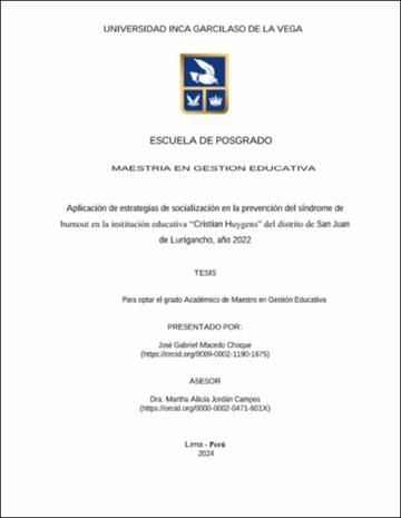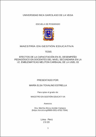 Item Aplicación de estrategias de socialización en la prevención del síndrome de burnout en la institución educativa “Cristian Huygens” del distrito de San Juan de Lurigancho, año 2022(Universidad Inca Garcilaso de la Vega, 2025-03-08) Macedo Choque, José Gabriel; Jordan Campos, Martha AliciaEl presente trabajo de investigación tuvo como objetivo, el desarrollo de la presente investigación tiene por finalidad determinar la relación de la aplicación de estrategias de socialización en la prevención del síndrome de Burnout en la institución educativa "Cristian Huygens” del distrito de San Juan de Lurigancho año 2022. Respecto a los aspectos metodológicos del trabajo, el tipo de investigación fue el descriptivo y el nivel aplicado. La población estuvo conformada por los 30 docentes de la institución educativa “Cristian Huygens” del distrito de San Juan de Lurigancho año 2022. La muestra estuvo conformada por los 30 docentes, a los cuales se les aplicó dos instrumentos, el primero que constó de 12 preguntas para medir las estrategias de socialización, utilizando la escala de Likert con alternativas de respuesta múltiple, el segundo instrumento validado de Maslach Burnout Inventory, con 22 preguntas sirve para medir el síndrome de Burnout. Se procedió a analizar los resultados, luego se realizó la contrastación de hipótesis, utilizando la prueba estadística conocida como coeficiente de correlación de Spearman, debido a que las variables de estudio son cualitativas. Finalmente, se pudo determinar que la aplicación de estrategias de socialización influye significativamente en la prevención del síndrome de Burnout en la institución educativa "Cristian Huygens” del distrito de San Juan de Lurigancho año 2022.Item EFECTOS DE LA CAPACITACIÓN EN EL DESEMPEÑO PEDAGÓGICO EN DOCENTES DEL NIVEL SECUNDARIA EN LA I.E. EMBLEMÁTICAS MELITON CARBAJAL DE LA UGEL 03(Universidad Inca Garcilaso de la Vega, 2025-02-24) TOVALINO ESTRELLA , MARÍA ELSA; Jordán Campos , Martha AliciaEl objetivo de la investigación fue demostrar que la capacitación se relaciona con el desempeño pedagógico en los docentes del nivel Secundaria de la I.E Emblemática Melitón Carbajal de la UGEL 03. La metodología aplicada comprende una investigación con enfoque cuantitativo, de tipo descriptivo correlacional, el diseño hipotético deductivo, no experimental. La Población estaba conformada por 89 docentes del nivel secundario de la Institución Educativo Emblemático Melitón Carvajal, siendo la muestra no probabilística. Los resultados encontrados demostraron que hay evidencia que si se implementó el curso de capacitación de fortalecimiento de capacidades pedagógico mejoró el desempeño docente en su práctica pedagógica en la I.E Emblemática Melitón Carbajal de la UGEL 03,asimismo, se determinó que hay evidencia que la calidad de información influyó positivamente en el desempeño pedagógico en los docentes del nivel secundaria en la I.E Emblemática Melitón Carbajal de la UGEL 03.A las conclusiones que se arribo fue que si se implementan curso de capacitación de fortalecimiento de capacidades pedagógico entonces mejora el desempeño docente en su práctica pedagógica en la I.E Emblemática Melitón Carbajal de la UGEL 03.Item Tecnologías de la información y comunicación en la gestión pedagógica de los docentes del centro de educación técnico productiva Manuela Felicia Gómez en el distrito de La Victoria año 2021(2023-12-01) Castro Navarro, José Leonardo; Jordán Campos, Martha AliciaEl presente trabajo de investigación tuvo como objetivo determinar la relación de las tecnologías de la información y comunicación con la gestión pedagógica de los docentes del Centro de Educación Técnico Productiva Manuela Felicia Gómez en el distrito de La Victoria, año 2021. Respecto a los aspectos metodológicos del trabajo, el tipo de investigación fue el descriptivo y el nivel aplicado. La población estuvo conformada por los 30 docentes quienes trabajan en el Centro de Educación Técnico Productiva Manuela Felicia Gómez de la Unidad de Gestión Educativa del distrito de La Victoria. La muestra estuvo conformada por los 30 docentes, a los cuales se les aplicó el instrumento que constó de 18 preguntas, utilizando la escala de Likert con alternativas de respuesta múltiple. Se procedió a analizar los resultados, luego se realizó la contrastación de hipótesis, utilizando la prueba estadística conocida como coeficiente de correlación de Spearman, debido a que las variables de estudio son cualitativas. Finalmente, se pudo determinar que las Tecnologías de la información y comunicación se relacionan significativamente con la gestión pedagógica de los docentes del Centro de Educación Técnico Productiva Manuela Felicia Gómez en el distrito de La Victoria, año 2021.Item Gestión pedagógica y desempeño de las docentes de educación inicial de las Redes N° 9 y 10 UGEL N° 03 - Lima(Universidad Inca Garcilaso de la Vega, 2022-03-16) Hurtado Ramírez, Zarela Angélica; Jordan Campos, Martha AliciaLa presente investigación titulada “GESTIÓN PEDAGÓGICA Y DESEMPEÑO DE LAS DOCENTES DE EDUCACIÓN INICIAL DE LAS REDES N°9 y 10 UGEL N° 03- LIMA”, tiene como objetivo determinar la relación entre gestión pedagógica y desempeño en docentes de educación inicial de las Redes N° 09 y 10, de la UGEL N° 03, Lima – 2019. Para ello, la investigación fue de enfoque cuantitativo de nivel analítico y de diseño correlacional transversal, conformado por una muestra de 57 docentes de las redes 9 y 10 Ugel 3; a quienes se aplicó los instrumentos de recolección de datos, empleando un cuestionario estructurado para medir gestión pedagógica y una rúbrica para medir desempeño de las docentes. Los datos obtenidos fueron procesados con el programa estadístico SPSS versión 26. Los resultados muestran que en las dimensiones de la variable gesti