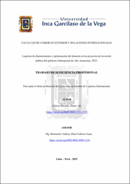 Item Logística de abastecimiento y optimización del almacén en los proyectos de inversión pública del gobierno Subregional de Alto Amazonas, 2025.(Universidad Inca Garcilaso de la Vega, 2025-09-24) Chávez Briceño, Henry Alí; Burmester Andreu, Hans Federico IsaacEl éxito de una gestión gubernamental eficiente se mide por impacto y la efectividad de los proyectos de inversión que realiza, en ese aspecto resalta la importancia que cumple la logística y abastecimiento de los almacenes que debe proveer de los materiales necesarios y de forma oportuna. En ese contexto, los almacenes de la gerencia subregional de Alto Amazonas presentaron algunos inconvenientes como consecuencia de algunos errores que se estaban realizando por parte del personal encargado de los mismos, para lo cual se planteó una propuesta de mejora, el cual posterior a su aplicación mostró mejoras significativas en cada uno de los indicadores evaluados, donde optimizó los espacios de anaqueles en 33,80 %, se incrementó los espacios en 68.17 %, se optimizó espacios adicionales en 20.32 %, se realizó en 100 % de exactitud los registros de inventarios de los almacenes, se redujo el conteo físico de materiales en 48.94 %, el tiempo de recepción se redujo al 30.08 % y en el despacho de 32.79 %, se redujeron en 56.63 % la obsolescencia de los materiales inutilizables, se identificó 18 tipos de riesgos: 7 “tolerables”, 6 “no tolerables” y 5 “moderado; asimismo, se propuso el desarrollo de reuniones mensuales, con elaboración de informes y seguimiento del personal, el uso de matrices de capacitación y que la codificación la realice el más capacitado del área.Item Implementación Sistematizada y Optimización del proceso de impresión de los Comprobantes de Pago de la Facturación Electrónica en la Empresa Leo Andes S.A. Lima -2022(Universidad Inca Garcilaso de la Vega, 2025-02-18) Rengifo Ramirez , Roger Luis; Munarriz Palomino, René JesúsEl presente trabajo de Suficiencia Profesional tiene como objetivo general determinar en qué medida la implementación sistematizada incide en la optimización del proceso de impresión de comprobantes de pago de la facturación electrónica en la Empresa Leo Andes S.A. Lima2022”, para lograr los objetivos el trabajo de investigación fue de enfoque cuantitativo, con un diseño no experimental transversal de tipo descriptivo, la población establecida fueron 50 trabajadores del centro de distribución Leo Andes S.A. con una muestra no probabilística de 10 personas del área de facturación y compaginación de pedidos, usando la técnica de la encuesta con preguntas cerradas estilo escala de Likert, también se usaron diagrama como Ishikawa, Pareto, histogramas, cuadros comparativos con el fin de analizar y evaluar soluciones, resultados al término de la implementación se determinó que la implementación sistematizada de un sistema nuevo para las impresiones de los comprobantes de pago a través de una ticketera térmica inciden en la optimización de los procesos involucrados desde la compaginación , etiquetado, pick&pack y embarque de los pedidos, dando como resultado de las encuestas de la variable sistematización el 60 % está de acuerdo con la implementación, y los resultados de la variable optimización el 78% está de acuerdo que se optimicen procesos , costos operativos , que se haga mejoras continuas. se hizo una evaluación ambiental usando un diagrama histograma dando como valor un 22% de ahorro, suprimiendo compra de papel, alquiler de impresoras y recurso humano, Por consiguiente, la implementación sistematizada logro su objetivo en beneficio de la eficiencia y rentabilidad de la Empresa.