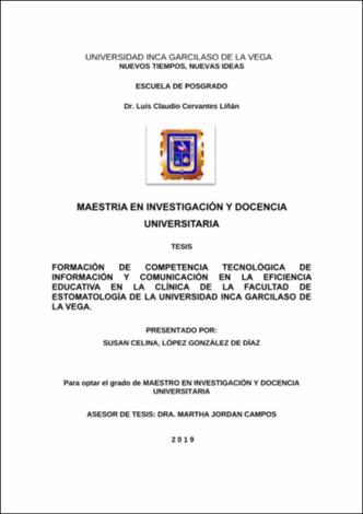 Formación de competencia tecnológica de información y comunicación en la eficiencia educativa en la clínica de la facultad de estomatología de la Universidad Inca Garcilaso de la Vega