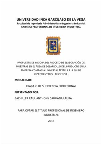 Propuesta de mejora del proceso de elaboración de muestras en el área de desarrollo del producto en la empresa compañía universal textil S.A. a fin de incrementar su eficiencia