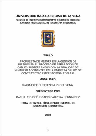 Propuesta de mejora en la gestión de riesgos en el proceso de reparación de cables subterraneos con la finalidad de minimizar accidentes en la empresa grupo de contratistas internacionales S.A.C.