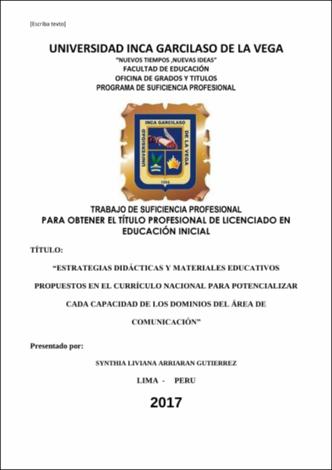 | dc.title | Estrategias didácticas y materiales educativos propuestos en el currículo nacional para potencializar cada capacidad de los dominios del área de comunicación | es_PE |