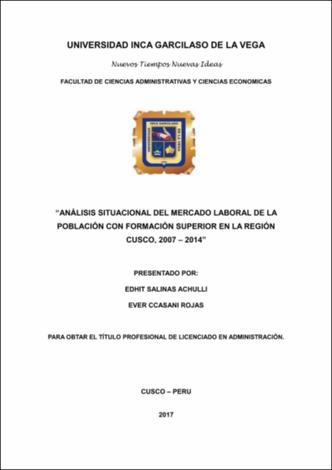 | dc.title | Análisis situacional del mercado laboral de la población con formación superior en la Región Cusco, 2007 –2014 | es_PE |