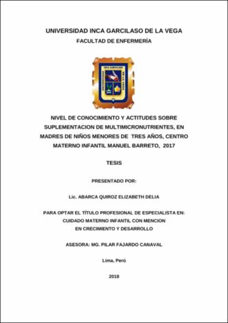 Nivel de conocimiento y actitudes sobre suplementación de multimicronutrientes, en madres de niños menores de tres años, centro materno infantil Manuel Barreto, 2017
