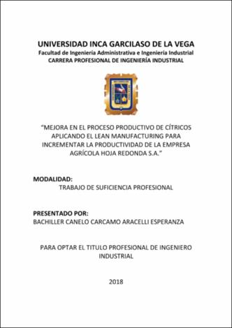 Mejora en el proceso productivo de cítricos aplicando el lean manufacturing para incrementar la productividad de la empresa agrícola hoja redonda S.A