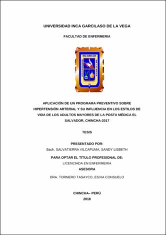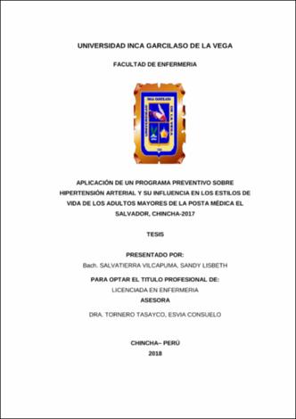 Aplicación de un programa preventivo sobre hipertensión arterial y su influencia en los estilos de vida de los adultos mayores de la posta médica el Salvador, Chincha-2017