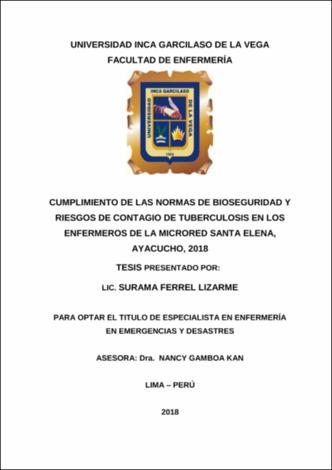 Cumplimiento de las normas de bioseguridad y riesgos de contagio de tuberculosis en los enfermeros de la microred Santa Elena, Ayacucho, 2018
