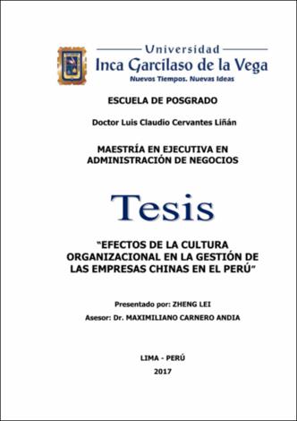 Efectos de la cultura organizacional en la gestión de las empresas Chinas en el Perú