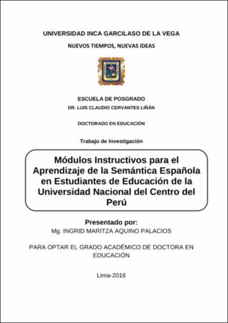 Módulos instructivos para el aprendizaje de la semántica Española en estudiantes de educación de la Universidad Nacional del Centro del Perú