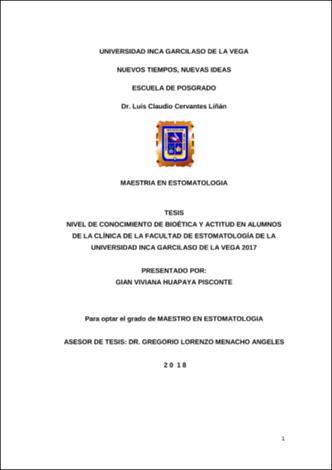 Nivel de conocimiento de bioética y actitud en alumnos de la clínica de la facultad de estomatología de la Universidad Inca Garcilaso de la Vega 2017