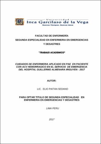Cuidados de enfermería aplicado en paciente con ACV hemorrágico en el servicio de emergencia del Hospital Guillermo Almenara Iriguyen – 2017