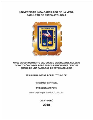 Nivel de conocimiento del código de ética del colegio odontológico del Perú en los estudiantes de post grado de una facultad de estomatología