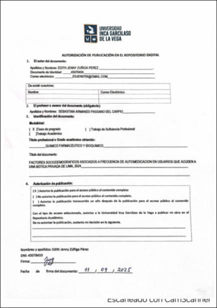 Factores sociodemográficos asociados a frecuencia de automedicación en usuarios que acuden a una botica privada de Lima, 2024