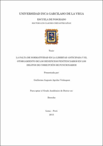 | dc.title | La falta de normatividad en la libertad anticipada y el otorgamiento de los beneficios penitenciarios en los delitos de corrupción de funcionarios. | es_PE |