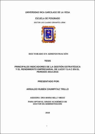 Principales indicadores de la gestión estratégica y el rendimiento empresarial de lucky S.A.C en el período 2014-2015