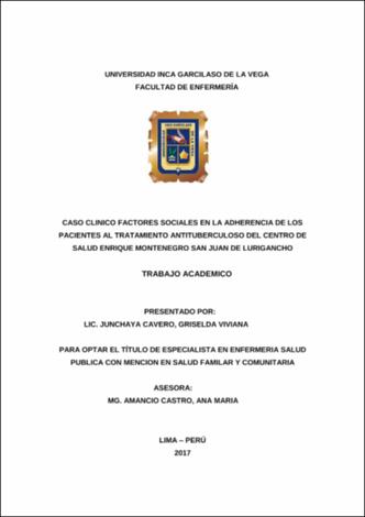 Caso clínico factores sociales en la adherencia de los pacientes al tratamiento antituberculoso del centro de salud Enrique Montenegro San Juan de Lurigancho