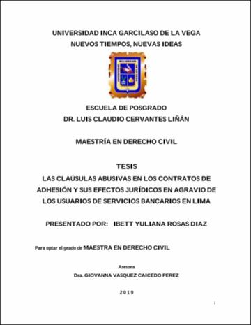 Las claúsulas abusivas en los contratos de adhesión y sus efectos jurídicos en agravio de los usuarios de servicios bancarios en Lima