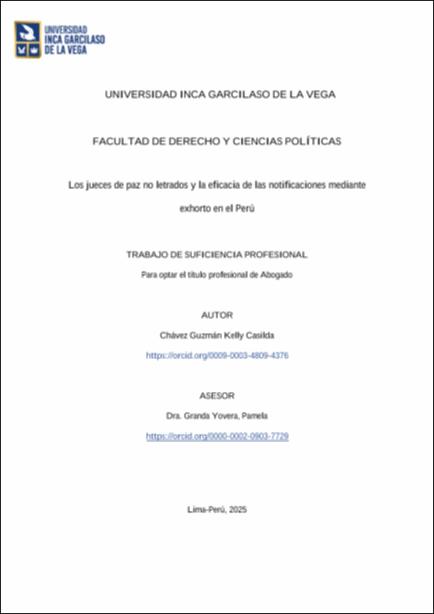 El presente trabajo de investigación se desarrolló con el objetivo de analizar de qué manera la implementación de una remuneración mínima vital a los jueces de paz no letrados contribuiría con la rapidez y eficacia de las notificaciones mediante exhorto en el Perú. Para ello, se realizó una investigación de tipo básica con un diseño descriptivo simple de corte transversal. Asimismo, se consideró pertinente abordar este estudio con un método documental y un enfoque de investigación no experimental de corte transversal. Toda esta información se recopiló a través de técnicas como el análisis documental, el análisis de contenido y la observación; para ello, se emplearon la revisión documental a través de plataformas en línea con acceso a bibliotecas académicas, como también, se empleó los instrumentos como la ficha de análisis de contenido y la guía de observación. Sobre esta base, se concluyó que la falta de remuneración para los jueces de paz no letrados en el Perú afecta de manera significativa la rapidez y eficacia de las notificaciones mediante exhorto, lo que impacta negativamente en el principio de celeridad procesal y el acceso equitativo a la justicia, especialmente en zonas rurales y de difícil acceso.